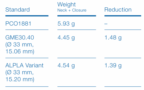 This is because the reduction goal can be achieved faster when the bottleneck is made smaller. There are limits to this, however, as not all small necks are compatible with large bottles. At the same time, the neck finishes must fit the new tethered caps and be adapted accordingly, which subsequently increases the options for solutions. Consumer safety is also important in this context because carbonated beverages are kept at a very high pressure, and that means the closure area requires special attention.