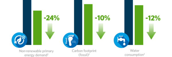 (2) Comparative Amcor ASSET™ life-cycle assessment on PE film containing 30% non-food contact PCR vs 0% PCR with all other variables remaining equal, January 2021