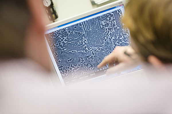 FIG 6: The RUB engineers analyse defects in the applied layers using scanning electron microscope images. © RUBIN, photo: Gorczany