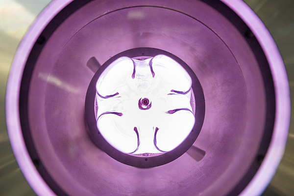 The plasma “cleans” and activates the interior bottle surface. © RUBIN, photo: Gorczany