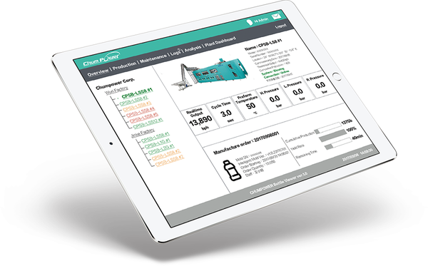 The intelligent bottle blower production system BottleViewer developed by CHUMPOWER was awarded the TaipeiPlas 2018 Intelligent Machine Award. The BottleViewer gives you control over all production activities carried out by the CHUMPOWER blow molding machine in your factory, easily via a computer browser or handheld device, including production information, production history and machine status in real-time. In addition, the online service request and the maintenance reminder are available for the next service call so that you can make an appointment for the machine service right at your fingertip. The information collected from our machines is transmitted to us as soon as it is available. Users can even speak to our service technicians online, which makes maintenance a lot easier.