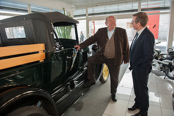 He purchases them from around the globe, sometimes in good condition and sometimes no more than heaps of scrap: vintage vehicles – motorcycles, cars and tractors. Around ten years ago, Alwin Lehner, the founder of ALPLA, placed his extremely successful company in the hands of his son Günther and started looking for a new calling. Although he is still very interested in the extrusion and stretch-blow moulding machines, “there’s not as much to tinker with on the new models”. The same cannot be said for vintage vehicles. That’s why he opened a vintage vehicle workshop and museum. His “hallowed halls” already hold more than 120 different treasures. With no plans to stop, the nearly 84-year-old business man is on the lookout for more. “I have been fascinated with machines that move since I was a little boy”, Lehner shared with me during our conversation at the company headquarters in Hard, Austria.