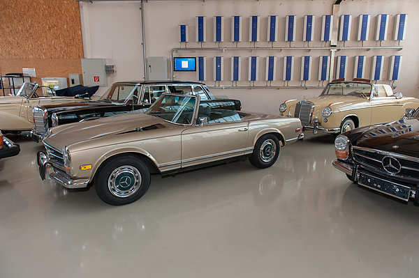 One of the halls houses a particularly exotic specimen – a brand new car, only two years old. The car in question is a hybrid vehicle which can run on either electricity or petrol, allowing it to easily achieve a range of 400 km and a top speed of 200 km/h. Not well known in Germany, the car is an American model produced by Fisker Automotive. “I bought this car because I am convinced that it will be valuable someday”, Lehner explains. Of course, he is also interested in the model’s special technology.