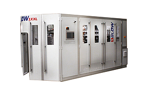 makes it bigger French manufacturer 1 BLOW further develops its rangeof PET blow-moulding machines with the new 1XXL typethat is dedicated to the production of large containers:this 1-cavity machine has been designed with the highestflexibility as it can produce bottles from 5 litres up to 30litres. The 1XXL benefits from all features to reach highperformances and a consistently high bottle quality:servo drives are used in standard on mould movementas well as on the stretching system. Recovery systemsare also basically provided (power + blowing air) in orderto reduce the bottle production costs. Heating capacitymay handle thick preforms (> 10 mm) for one-way andreturnable containers. A neck orientation system isavailable optionally on the 1XXL machine.