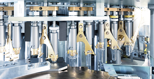 In order to ensure the quality of the products, it is essential that the aseptic zone is absolutely clean. KHS ensures this by gentle non-contact filling, among other things, performed in two stages. This prevents any excessive beverage foaming.