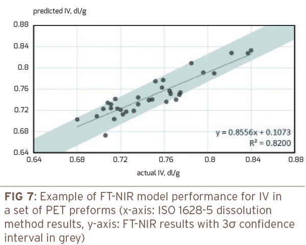 FT-NIR offers an attractive alternative for IV determination as the property relates to sample molecular weight, chain length and conformation and all those factors have an impact on the FT-NIR spectrum. It is therefore possible to measure IV quickly and with relatively low effort with a FT-NIR analyzer, making it viable e.g. as a goods-received inspection technique (Figure 7).