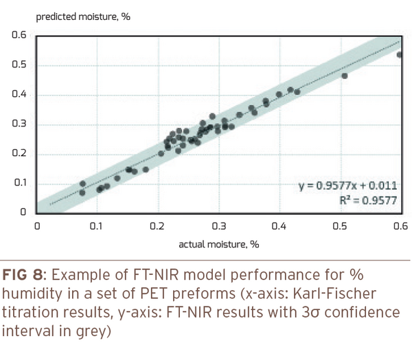 Once the FT-NIR analyzer has been calibrated against the different reference methods for a set of PET properties, the obvious benefit of its implementation is that it can replace all those reference methods for routine analysis of new samples, for instance in a quality control laboratory.
