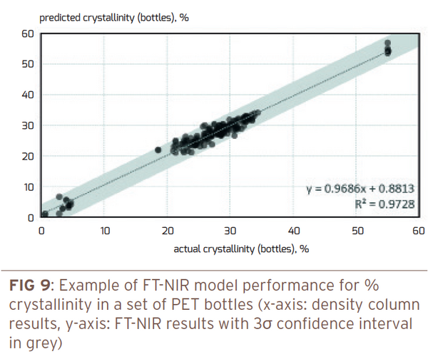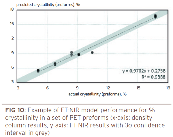 Whilst several laboratory methods exist for determination of important PET parameters such as crystallinity, moisture, intrinsic viscosity (IV) or composition, most of those methods require specialized equipment, time, operator expertise and solvents or reagents for some analyses.