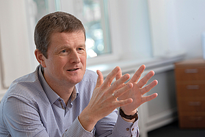 Acker has been CEO of KHS in Dortmund for just over a year. He lives with his family in Oldenburg and jokes at the beginning of our conversation about his new home town, where his family have settled in quickly after numerous relocations in recent years: By current calculations, he explains, Oldenburg is acutely threatened by rising sea levels. However, the American researchers who came to this conclusion failed to factor the dikes into their calculations so the danger is probably not yet as great as feared.