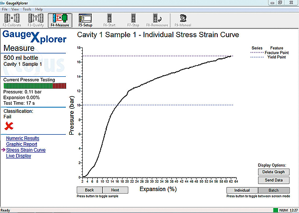 Focusing on the customer is key to Torus’ success, having built and continuing to build relationships and partnerships with leading plastic bottle and preform manufacturers, Torus have created a rewarding collaborative environment. Two examples of such collaborations are the Advanced Burst Testing (see Figure 4) developed in collaboration with ColorMatrix™ and the single operation Top Load & Volume Gauge.