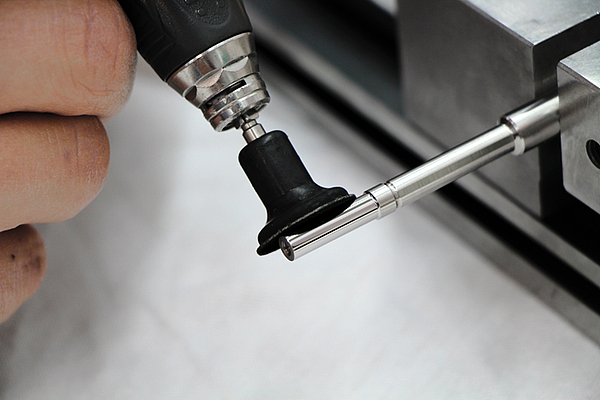 On the valve gates, the round ground surface was pre-polished with Ra 0.13 µm crosswise to the grinding direction and alternately crosswise with oilstones and paper up to 1200 grit and finally highly polished with diamond pastes and polishing fleece up to N1 - Ra 0.015 µm in the demoulding direction.