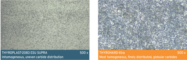 High-gloss polished surfaces are a must for transparent plastics. The nitrogenalloyed steel THYROHARD-Xtra is ideal for polishing and laser texturing work thanks to its homogeneous and fine carbide microstructure. This homogenous and fine carbide structure ensures a high-quality surface, which is required for applications with demanding visual requirements.