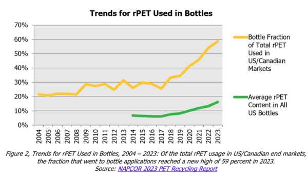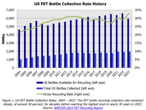 “PET plastic bottles play a vital role in a circular economy because they can be designed to be remade and our members are working hard to ensure they get recycled,” stated Laura Stewart, NAPCOR’s executive director. “NAPCOR’s 2023 PET Recycling Report shows that while there were fewer PET bottles available to recycle in the US, there were still more PET bottles recycled in 2023, resulting in a higher recovery percentage. When manufacturers, consumers, retailers, and recyclers work together to ensure PET is selected, collected, and recycled, our planet reaps the rewards.”