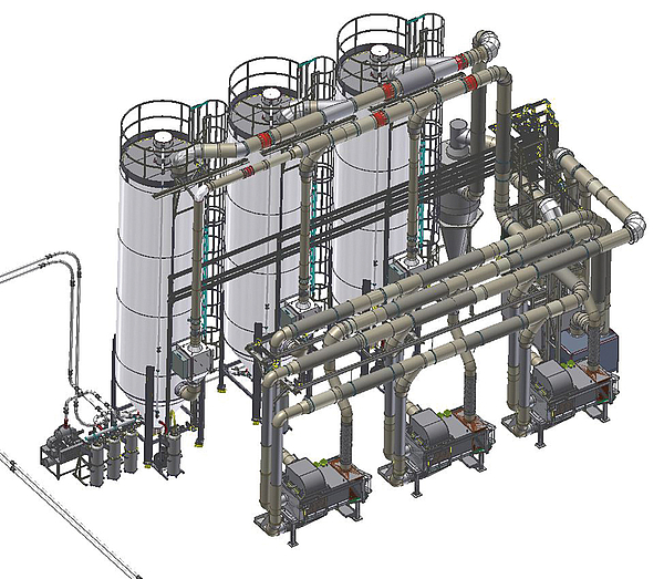 For the brand new and maybe most modern plant Eisbär designed and supplied: Resublimate Flakes (Preliminary Purification), RFID Distribution, Mixing/Dosing and Material Drying and Mold Dehumidification