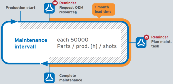 For instant usage of the tool, the entire system can also be used without any connection of a machine to a maintenance plan. Then, not based on machine data but only based on time intervals (i.e. weekly, quarter year, half year, yearly). By that, OEMs can plan and organize maintenance services for their customers independent of their involvement.