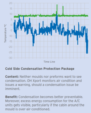 The technical target for OH Xport was to visualize what is not obvious to see. Plastic moulders now receive correlated process data from inside the moulding process. Signals which move away from their target values indicate potential sources of error. Process deviations can be detected before the visual inspection systems generate alarms on moulded product.