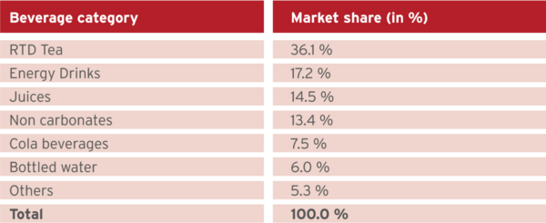 The RTD tea market in Vietnam is dominated by three companies: Tan Hiep Phat, Filipino Universal Robina Corporation (URC) and Suntory PepsiCo. Together, these companies account for more than 90% of the $1.96 billion RTD market (2.01 billion litres). Tan Hiep Phat is the market leader with 53% market share. The company used to hold more than 55% of its market share in 2012, but fell below 40% in just three years after a scandal in late 2015, when a fly was found in one of its tea bottles. The four biggest names in the Vietnamese beverage market include Coca-Cola Vietnam from the US, Suntory PepsiCo (a fully foreign-owned joint venture between PepsiCo and Suntory Holdings Limited of Japan), URC Vietnam from the Philippines and Tan Hiep Phat from Vietnam.