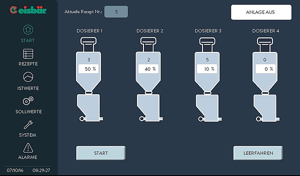 - Visualization and graphic overview of the different dosing units and the set recipes.