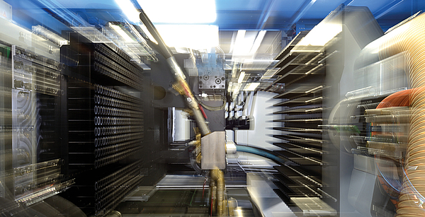It is not the only way. A short while ago, a SIPA employee was watching an XFORM 500 system equipped with a 180-cavity mold running at full tilt, with a cycle time of 5.4 seconds. Normally, when a machine of that size and type is operating flat-out, it makes its presence known. The air vibrates, you may even feel throbbing through the floor.
