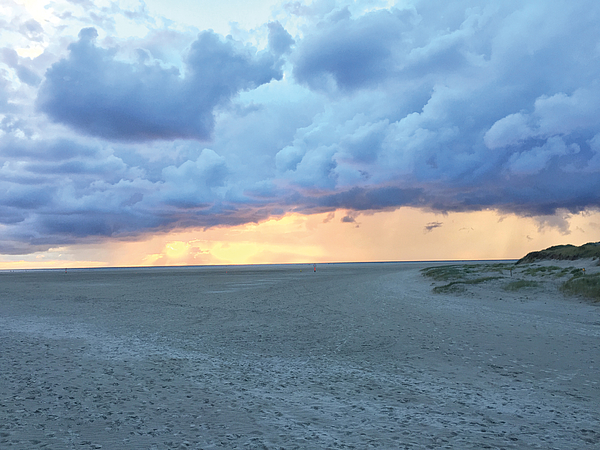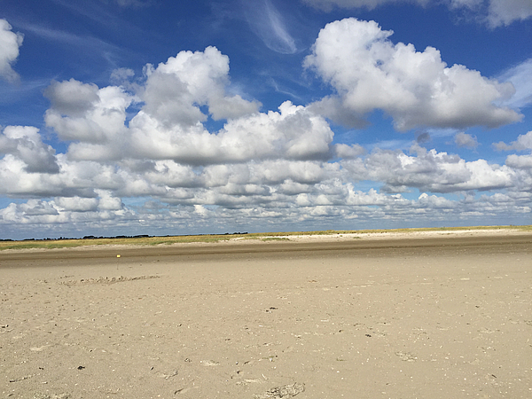The colours of the large German Eiderstedt peninsula, with its seemingly infinite beach, are soothing – depending on the weather, the sand can be golden or muted in the colours of nature, the sky can be an impressive, brilliant blue or a threatening, dark grey that warns of a turn in the weather, the grasses oscillate between bright green and light grey, sea lavender peppers the dunes with splashes of purple.