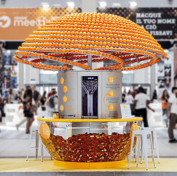 Feel the Peel is a circular juice bar that uses orange peels to make 3D-printed cups. The prototype cuts the oranges and separates the peel to manufacture a disposable bioplastic cup used to drink the freshly squeezed juice. After consumption, the cup is then recycled. In the future, the company aims to include new functions like printing fabric for clothing from the orange peel. With younger generations valuing experiences, this innovation is not only greener, but also attractive as it allows consumers to print their own cup using their own waste. Technology that optimises the use of materials, producing much less waste, can disrupt the way products are manufactured.