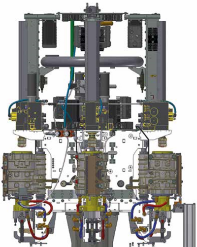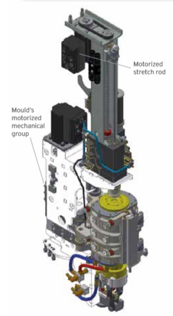 Another important innovation is the motorization of the mechanical mould unit (Fig. 3), that has turned SMI’s EBS ERGON stretch-blow moulders into a real “cam-free” system through its integration with the electronic stretching rod: