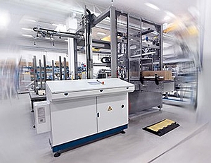 The APS 620 automatic palletizer produced by SMI is suitable for production requirements up to 20 packs per minute (depending on the palletizing pattern).