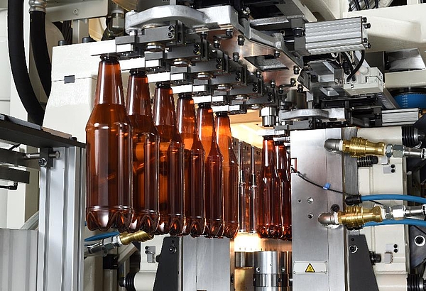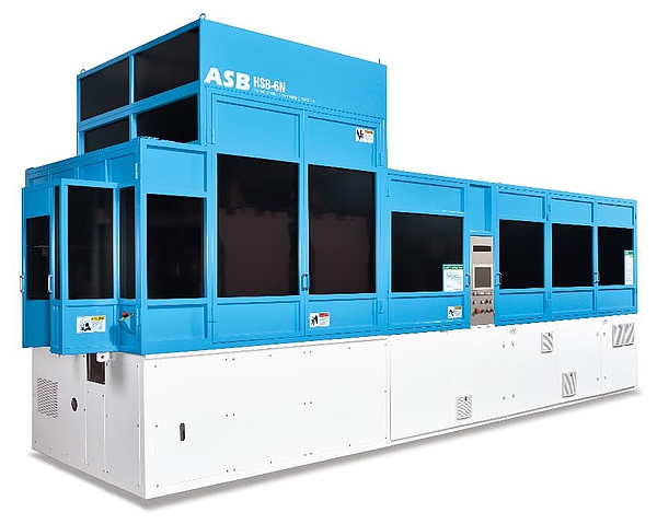 - HSB-6N – 2-step re-heat stretch blow molding machine featuring ASB’s double-blow heat-set technology for heat resistant beer bottles complying with the industry standard tunnel pasteurizing process.