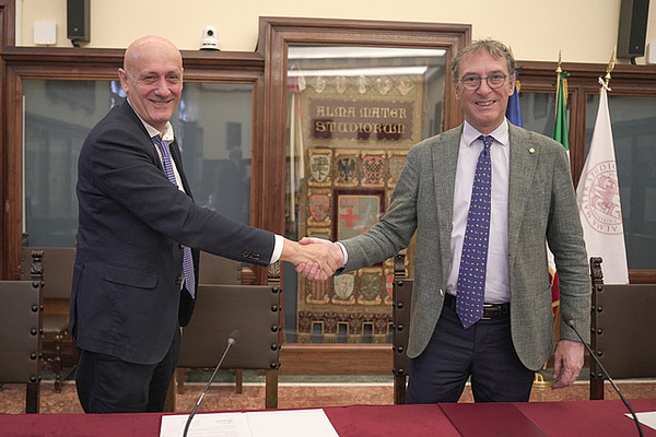 Bologna University and SACMI have renewed the Framework Agreement that sees them cooperate in areas ranging from research, innovation, technological development and scientific consultancy to higher education and careers guidance. The five-year protocol was signed today, by Dean Giovanni Molari and the President of SACMI, Paolo Mongardi.