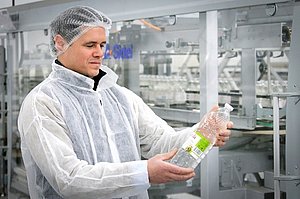 To meet the customer’s requirements, Sidel supplied a complete PET line benefiting from their tremendous experience in the edible oil and water businesses, while at the same time applying their comprehensive know-how from the home care industry. The line, which is running at 23,000 bottles per hour[2] with 90% efficiency today, features a Sidel Matrix™ Combi, which helps reduce the footprint and operational costs. Equipped with a vacuum system on top of the filler, it is capable to suck in acid steam to avoid the development of corrosion on the blowing part.