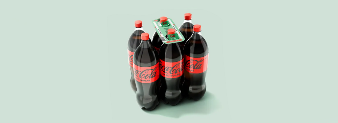Coca‑Cola and its strategic bottling partner Coca‑Cola Europacific Partners have announced that they will begin trialling one of the next generation of multipack solutions without plastic film - an innovative secondary packaging design that replaces plastic shrink wrap on large PET multipacks with glue dots and a recyclable cardboard handle.