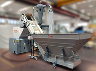 The new CMG series of grinding systems designed for PET preforms features integral infeed conveyor with rigid belt, stainless steel holding hopper and sides, metal detector, and enclosed feed chute to granulator. The infeed conveyor is integral part of the system, not anymore an appendix or an auxiliary device, and is controlled by the granulator so to synchronize all operations in full.
