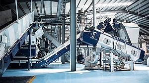 What sounds simple in theory is only successful if all components are ideally matched. The Lindner shredder Micromat 2000 ensures a homogeneous output with a low fines content, which is decisive for the subsequent cleaning. Diverse components such as the reliable Floater pre-washer and the newly developed friction washer from the Twister series, are combined to create an efficient washing process. These effectively remove any retained dirt using metered friction and adapting the dwell time of the material. To achieve a completely clean and dry material, which is necessary for the extrusion, a modern drying system is installed downstream of the washing components. The waste water is cleaned in the fully integrated water treatment facility, which is also supplied by Lindner, and then returned to the process closing the loop. This helps to conserve the island’s water resources.