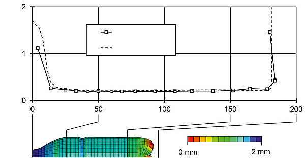 Fig. 2: Simulation of the stretch blow moulding process and the topload behaviour of a bottle
