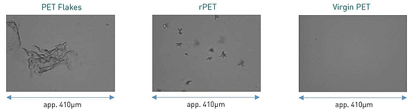 - PET flakes and recycled PET typically contain respectively 113,000 and 14,000 particle contaminations. This is respectively 64 and 8 times more than present in virgin PET! The more particle contaminations, the more haziness in rPET packaging. The unique EMMTEC Partisol analysis method detects contaminations in PET and helps PET recyclers & packaging makers to improve the product quality.