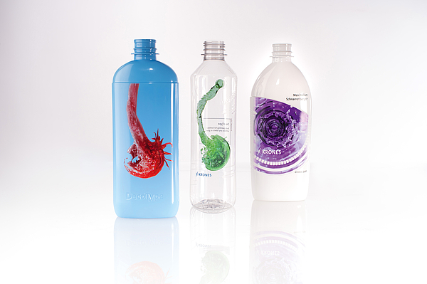 Fig. 1: The DecoType Select prints on both special-shaped and cylindrical containers made of PET, HDPE and glass.
