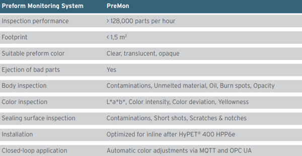Andreas Müller, CEO of INTRAVIS Inc., points out the good integration of both machines and the advantages for the customer: “The seamless integration of the PreMon with the HyPET®6e system enables direct and continuous feedback on color values. This real-time communication ensures that preforms consistently meet the desired specifications, improving the reliability and quality of the final product. The compact design of the PreMon requires a particularly small footprint in the production hall which leads to significant space savings. The ability to make instant adjustments sets this application apart from traditional methods: It offers a significant advantage in maintaining color consistency and reducing variability.”