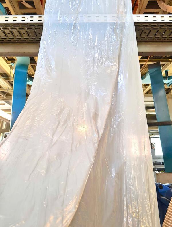 The process was tested, among other things, on real material mixtures such as the Green Dot’s 310 film fraction from the post-consumer sector. The polyethylen (PE) recovered in this way were not only processed into reusable granules, but also successfully used to blow new films, completing the cycle from film-to-film.