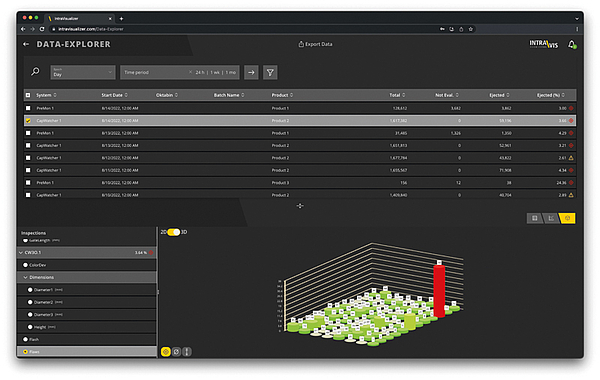 In doing so, the software accesses the multitude of product-related quality data from all INTRAVIS inspection systems in a production plant, analyzes them in detail, and uses them to determine trends and important information for the quality, manufacturing, and management teams.