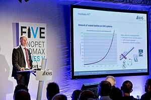 Another topic of the in-house exhibition was the service that KHS has recently expanded worldwide. Dr. Martin Koschmieder, Head of Service, emphasized the Bottles & Shapes ™ program with which the company provides customers holistic advice on the design, engineering, optimization and production of PET bottles. "We reduce material consumption by optimizing the weight and thus decrease the cost of production as well as the cost of secondary packaging," said Koschmieder and illustrated the advantages for customers with an example: "Based on the production of 270 million 0.5-liter bottles of highly carbonated water per year, cost savings of up to €770,000 result by reducing the weight from 12.5 to 9.9 grams."