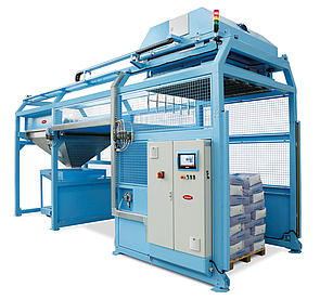 The bag is the simplest and most standard type of packaging and is widely available on the market. The appropriate quantity of material needs to be transferred into a container, that allows suction from the side of the machine to the hopper of the IMM, thus ensuring continuous production. These bins come in 10 different sizes, enabling the handling of an appropriate quantity of material per hour, shift or day, thereby reducing manual labour to a few interventions per day.