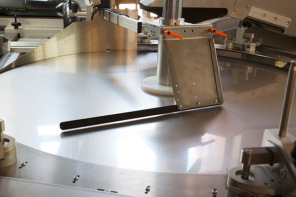 The disc separator is yet another innovation on the PreWatcher III. It is positioned right above the centrifugal feeder, being tied to the middle pillar, and separates sticky preforms from one another. Small and light preforms in particular can now be arranged quicker, resulting in even faster inspection.