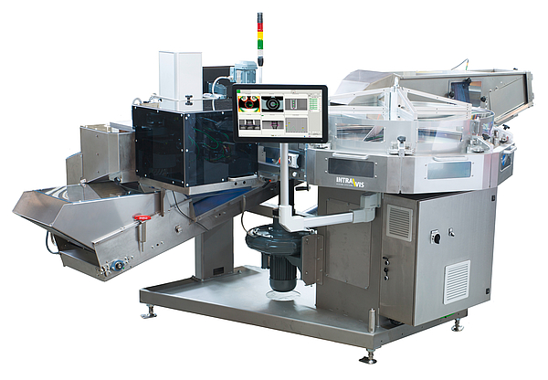 The PreWatcher III from Intravis is a preform inspection system that can be installed behind an injection molding machine. In contrast to the Intravis Sample-PreWatcher, it is especially designed for inline inspection and inspects 100 % of the produced preforms. The entire system takes up a footprint of eight square meters including the preform feeding unit. Besides the option to use the PreWatcher III inline, it also can be used for offline inspection in combination with a bunker, tipper and octabin filler.