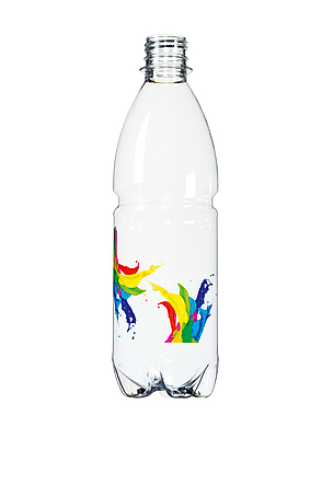 It goes without saying for KHS that on no account must the print quality be inferior to that of a label. As the size of the droplets varies, the inkjet technology achieves an optical resolution of 1080 x 1080 dpi (physically 360 x 360 dpi) and works with both RGB and CMYK color models. The motif may be up to 70 mm high and the cylindrical containers can have a height of between 100 and 320 mm and a diameter of 40 to 115 mm. The print quality is retained both during further processing of the PET bottles on the line and during retail and later handling by the consumer.