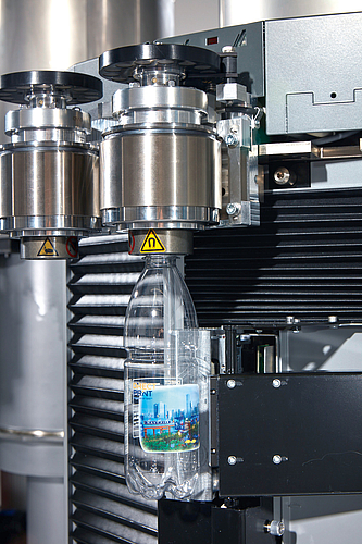 New decoration options, such as the no-label look on transparent PET containers or the creation of individual bottles, are of great strategic interest to beverage producers. The great reduction in the time taken from the initial design idea to the finished bottle – brought about by the omission of the label design, order and delivery alone – is readily welcomed by marketing and advertising experts in particular. Totally new marketing ideas are also possible. The previous day’s football results printed on a beer bottle, soda pop bottles sporting the likenesses of the birthday girl or boy and his or her party guests or the winning numbers in a lottery: all of these ideas are now feasible. The smaller the number and the more individual the design of the containers produced, the more worthwhile the use of the direct print system. For very large batches the label remains the more economical option yet this is not the focus of marketing and advertising campaigns.