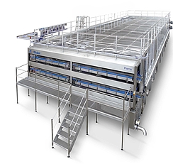 Once the beverage is filled and the bottle capped, beverage safety and consistency are ensured by sterilising the head-space and cap with the Sidel cap steriliser. It controls this process by tilting the bottle at a precise angle, temperature and contact time. This step puts all internal surfaces and air space in contact with the hot beverage, eliminating microorganisms and extending product shelf life. Sidel’s cooling system cools the product while avoiding thermal stress and preserving organoleptic properties, taste and colour, for a great consumer experience. The modular cooling configuration can be easily upgraded to match the production needs of today and tomorrow. Additionally, the advanced engineering allows a precise sizing of the cooler with a 20% reduced footprint and minimal water consumption compared with traditional solutions. Line integration with Tetra Pak Processing Systems can also lead to energy savings of up to 45% by recovering, for example, warm water from the cooler for pre-heating at the pasteuriser