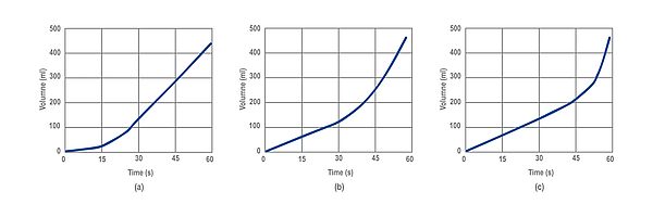 An industry standard test to determine a bottle’s bursting point. The bottle is filled and primed before the pressure is increased at a controlled ramp rate, resulting in a corresponding volume increase, until the bottle bursts, as depicted in Figure 1.
