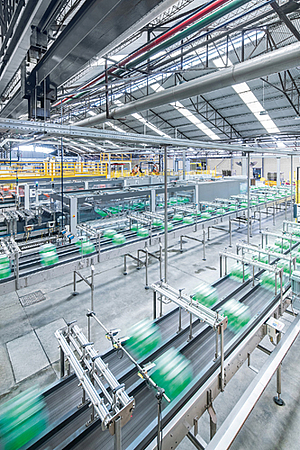 The biggest challenge of this project was coordinating the construction schedule with that for system installation. The undertaking was all the more complex as during the ongoing process various formats had to be added which were to be processed on the production line. “The system’s flexibility was a major priority for us in view of the huge variety of products we produce,” states the production manager with reference to the company’s sizeable portfolio, which ranges from brands such as Coca-Cola, Fanta and Sprite through Schweppes to Aquarius and Powerade. “Moreover, using as little energy as possible was equally important to us.”