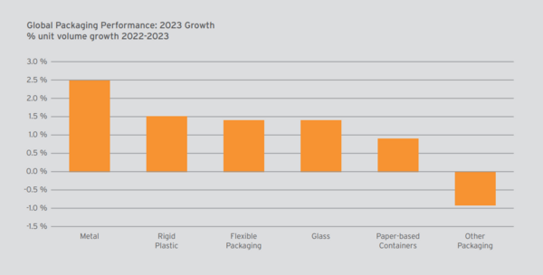 Rigid plastic packaging amounted to 1.1 trillion packs in 2023, meaning this group of pack types represents 28% of global grocery packaging sales. Demand is led by PET bottles for soft drinks and thin wall plastic containers, the latter strongly specified across food end-uses, including yoghurt, butter and ice cream.