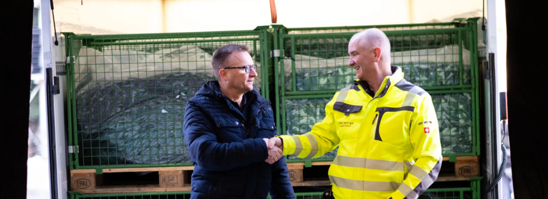 The return of used straps is handled through the re‑strap collection system. Interested companies can contact Matthias Schäfer directly and collect their strapping waste. Thanks to the partnership with Teufelberger, used straps become high‑quality strapping again – a circular system that works.